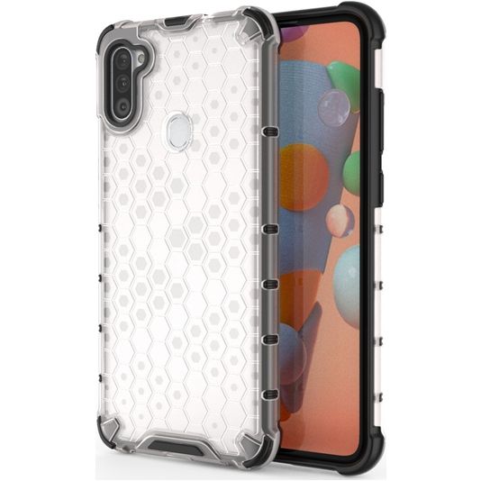 Mobigear Honeycomb Coque Transparente Samsung Galaxy A11 Coque arrière Rigide Anti-Chocs - Transparent