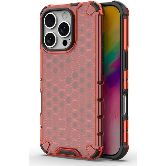 Mobigear Honeycomb Coque iPhone 16 Pro Coque arrière Rigide Anti-Chocs - Rouge