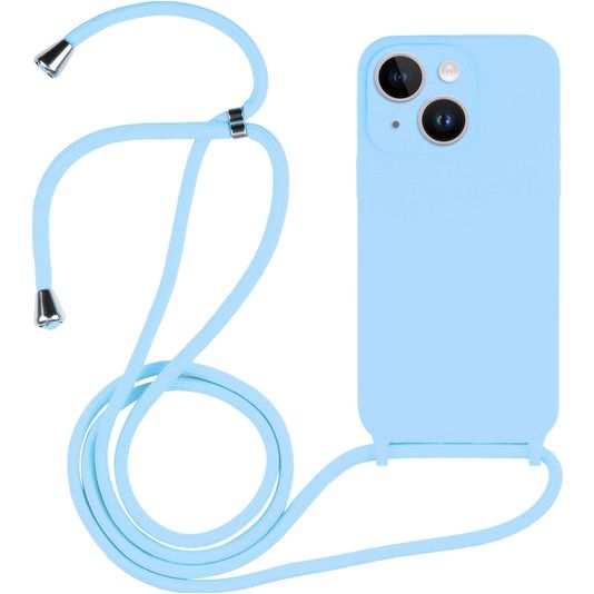 Mobigear Lanyard iPhone 15 Coque avec cordon en Silicone - Bleu