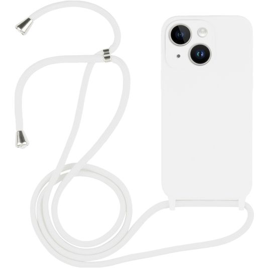 Mobigear Lanyard iPhone 15 Plus Coque avec cordon en Silicone - Blanc