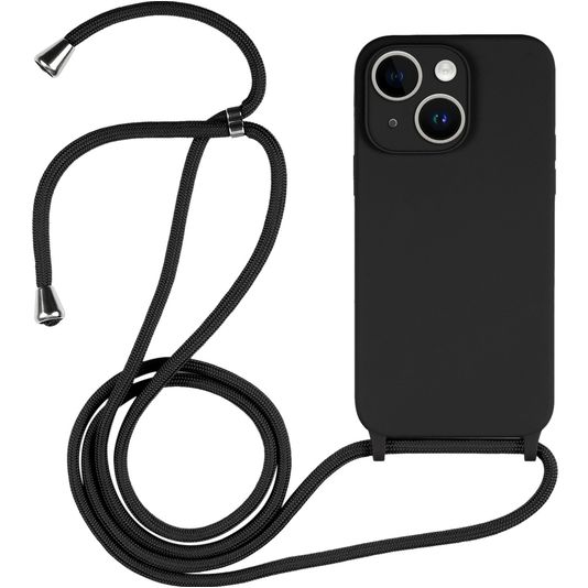 Mobigear Lanyard iPhone 15 Plus Coque avec cordon en Silicone - Noir
