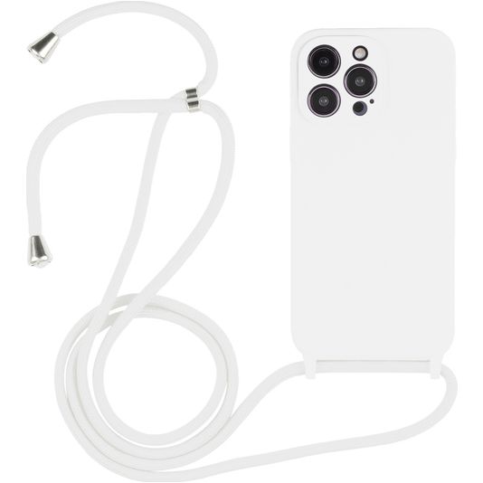 Mobigear Lanyard iPhone 15 Pro Coque avec cordon en Silicone - Blanc