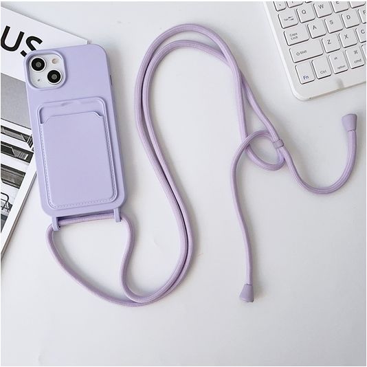 Mobigear Lanyard Card iPhone 15 Plus Coque avec cordon en Silicone et Porte-Cartes - Violet