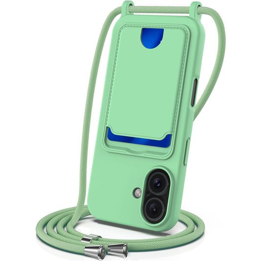 Mobigear Lanyard Card iPhone 16 Plus Coque avec cordon en Silicone et Porte-Cartes - Vert
