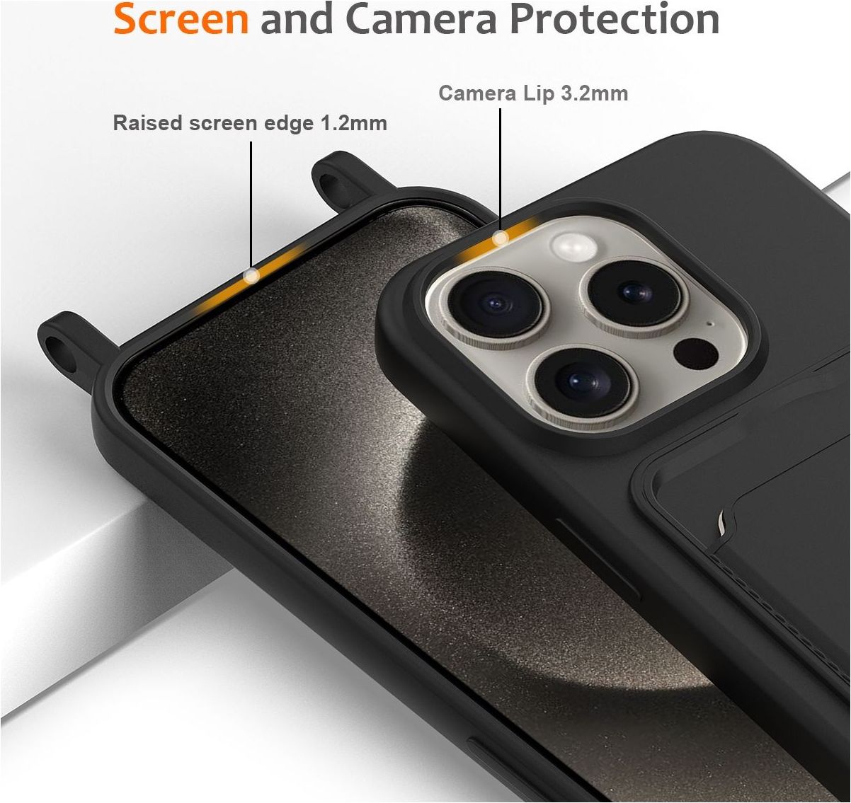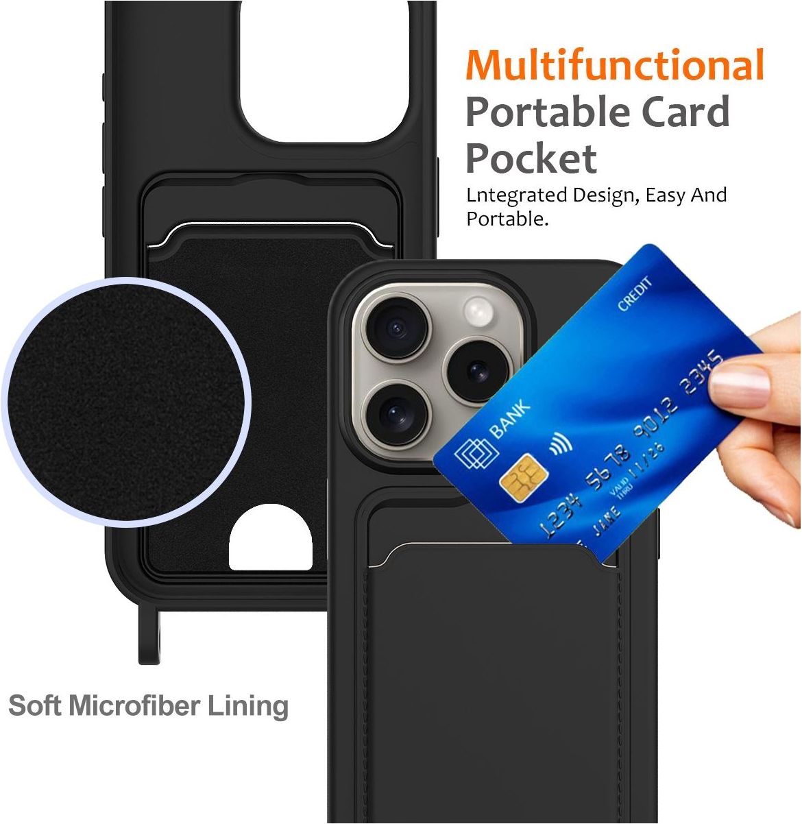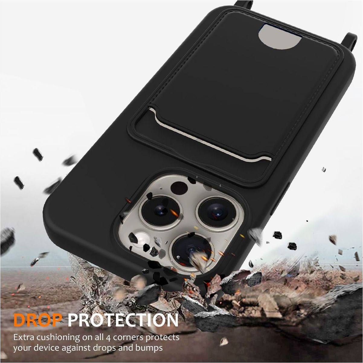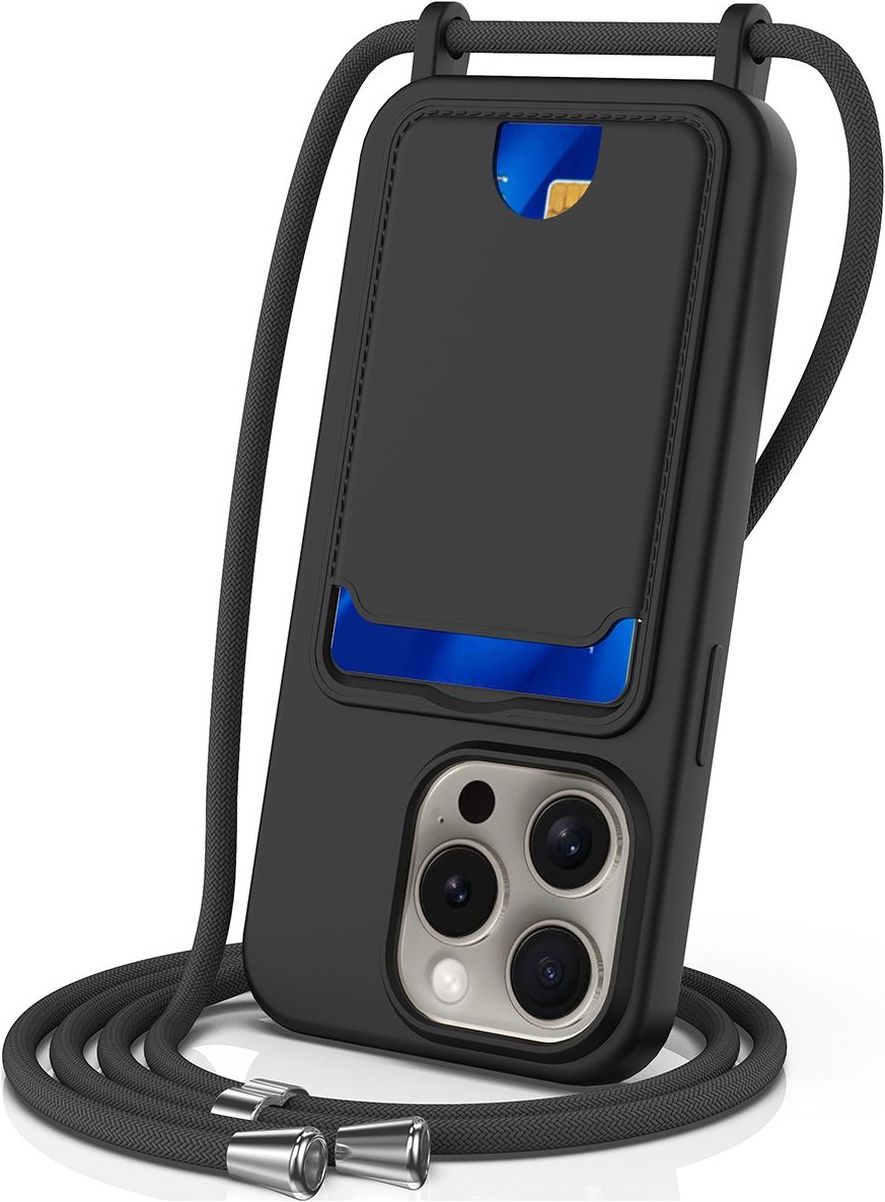 Mobigear Lanyard Card iPhone 16 Pro Max Coque avec cordon en Silicone et Porte-Cartes - Noir