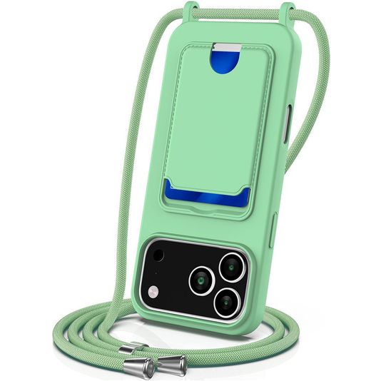Mobigear Lanyard Card iPhone 17 Pro Coque avec cordon en Silicone et Porte-Cartes - Vert