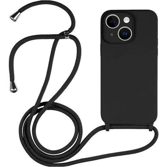 Mobigear Lanyard iPhone 14 Coque avec cordon en Silicone - Noir