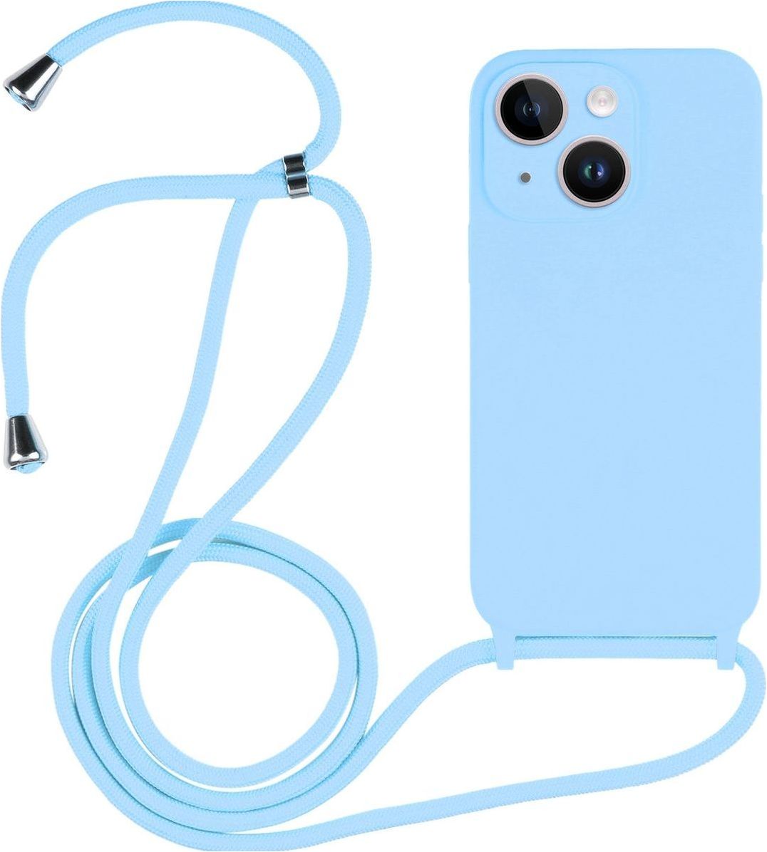 Mobigear Lanyard iPhone 14 Plus Coque avec cordon en Silicone - Baby Blue