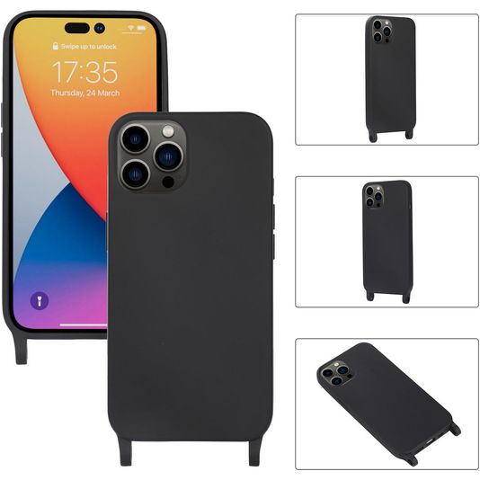 Mobigear Lanyard iPhone 14 Pro Max Coque avec cordon en Silicone - Noir