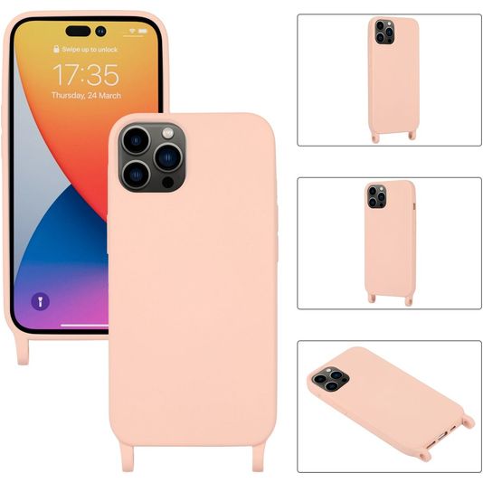 Mobigear Lanyard iPhone 14 Pro Max Coque avec cordon en Silicone - Rose