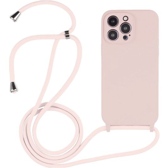 Mobigear Lanyard iPhone 14 Pro Coque avec cordon en Silicone - Sand Pink