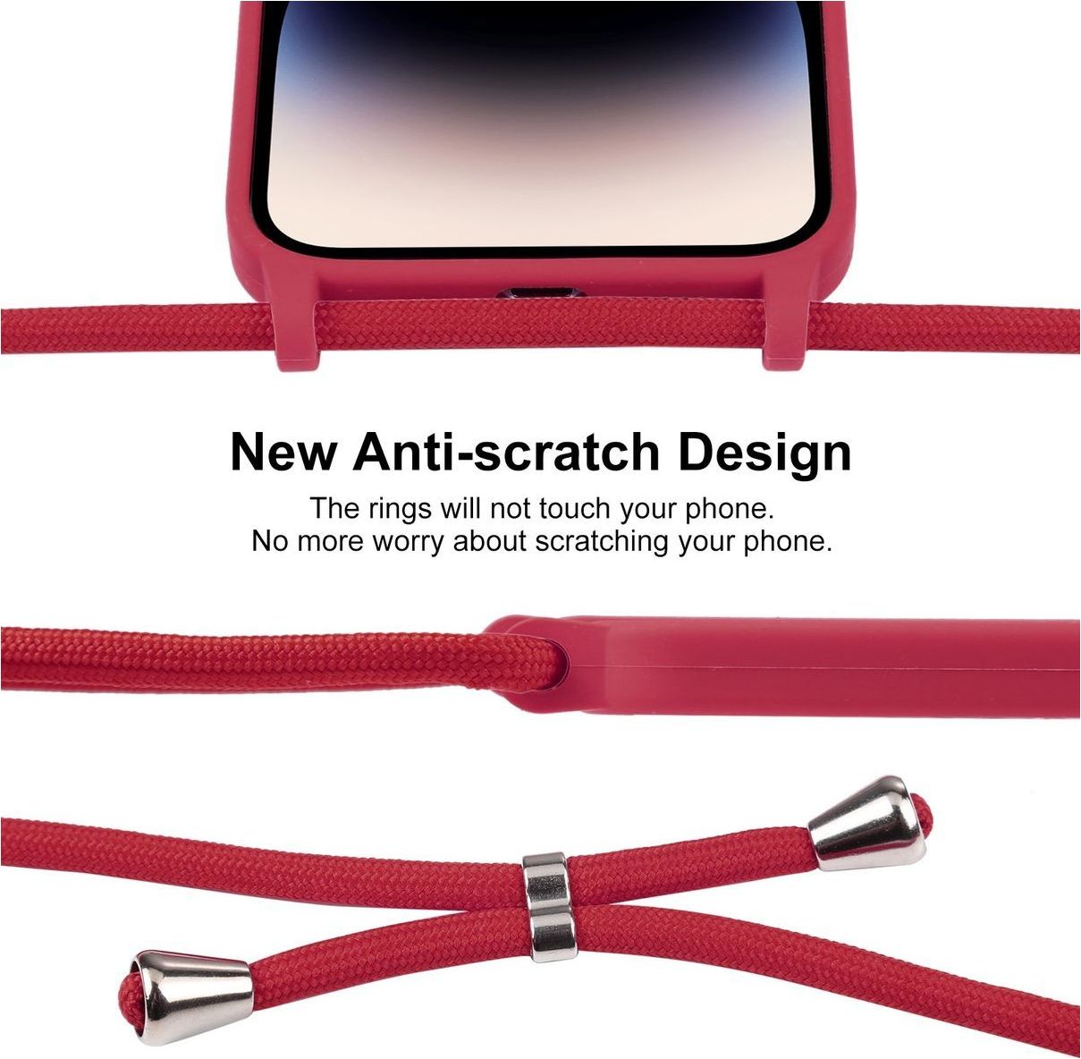 Cette coque avec cordon pour le Apple iPhone 14 Pro te permet de porter ton téléphone autour du cou. Le cordon est réglable en longueur et donc toujours confortable à porter. Cela te permet de toujours avoir ton téléphone à portée de main et de garder les mains libres.