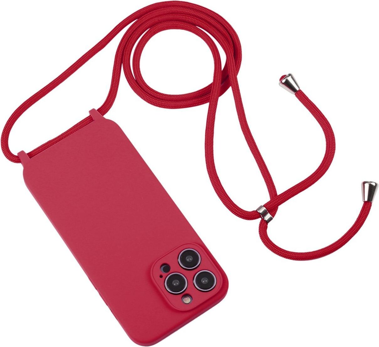 Mobigear Lanyard iPhone 14 Pro Coque avec cordon en Silicone - Bordeaux