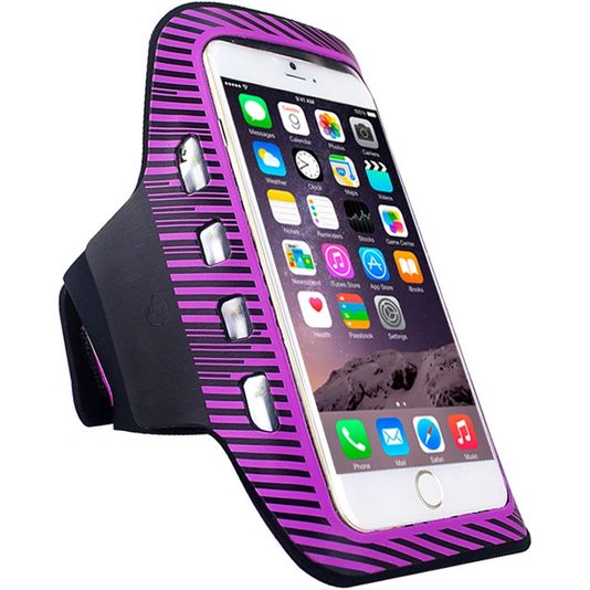 Tu emportes ton Apple iPhone 6 Plus avec toi lorsque tu fais du sport ? Alors ce bracelet de sport Mobigear LED de couleur violet est fait pour toi ! Avec un bracelet de sport Apple iPhone 6 Plus, tu peux désormais écouter de la musique ou suivre les statistiques de ton entraînement en toute sécurité et confortablement, tandis que ton téléphone ne te gêne pas ou ne risque pas de tomber et de s'abîmer.