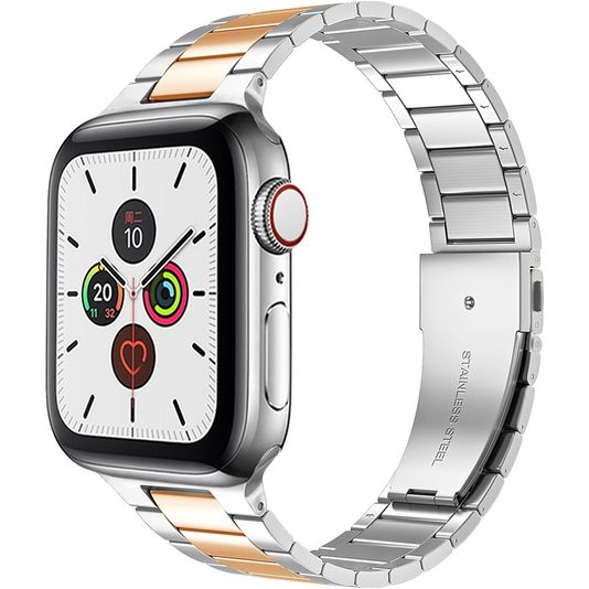 Mobigear Lissabon Bracelet Acier Apple Watch Fermeture boucle déployante - 49/46/45/44 mm - Rose doré / Argent