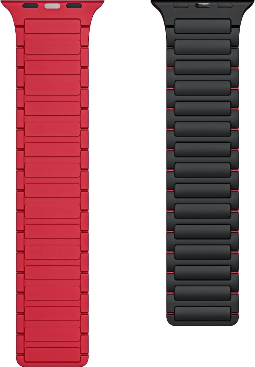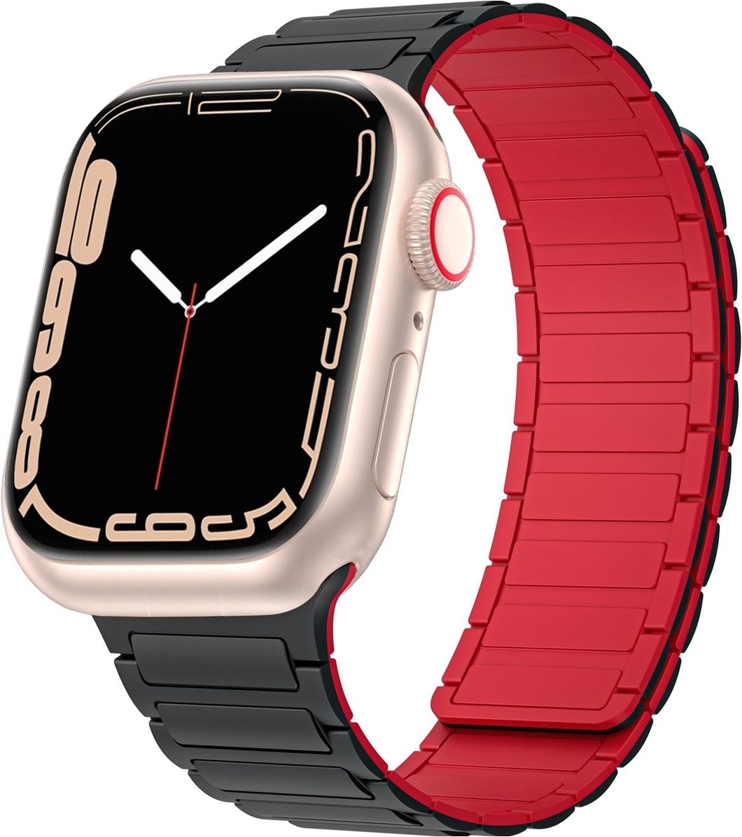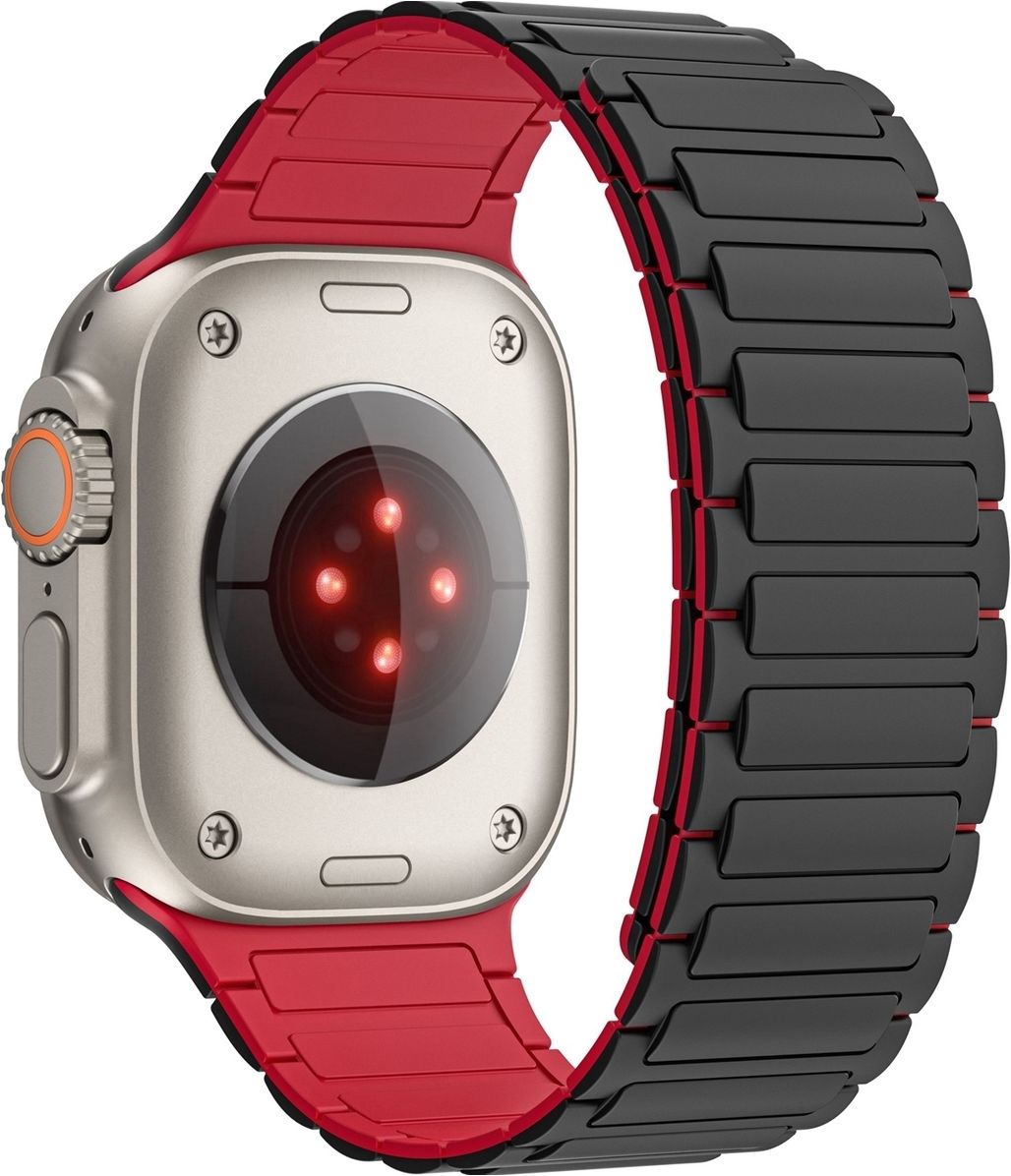Mobigear Loop Mag Bracelet Silicone Apple Watch Fermeture magnétique - 49/46/45/44 mm - Noir / Rouge