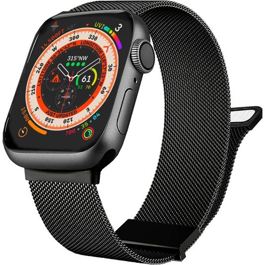 Mobigear Luxury Loop Bracelet Milanais Apple Watch Fermeture magnétique - 49/46/45/44 mm - Noir