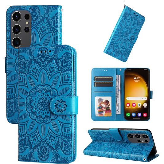 Mobigear Sunflower Housse Samsung Galaxy S24 Ultra Etui Porte-Monnaie - Bleu