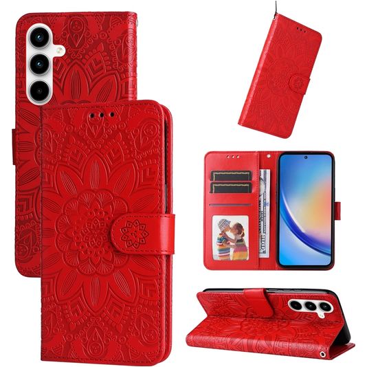 Mobigear Sunflower Housse Samsung Galaxy A35 Etui Porte-Monnaie - Rouge