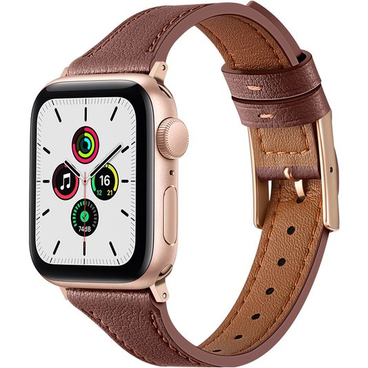 Mobigear Napoli Bracelet Cuir Apple Watch Fermeture boucle ardillon - 42/41/40/38 mm - Marron