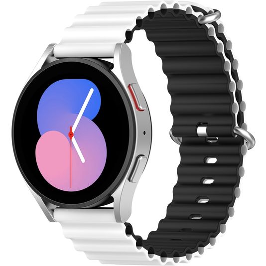 Mobigear Ocean Bracelet Silicone Smartwatch Fermeture boucle ardillon - Connexion universelle de 22 mm - Noir / Blanc