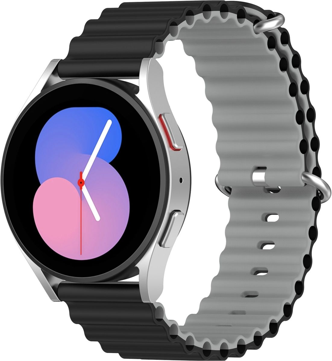 Mobigear Ocean Bracelet Silicone Smartwatch Fermeture boucle ardillon - Connexion universelle de 22 mm - Noir / Gris