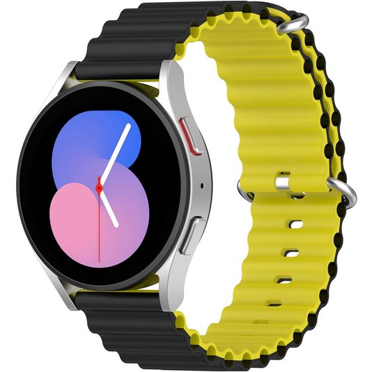 Mobigear Ocean Bracelet Silicone Smartwatch Fermeture boucle ardillon - Connexion universelle de 22 mm - Noir / Jaune