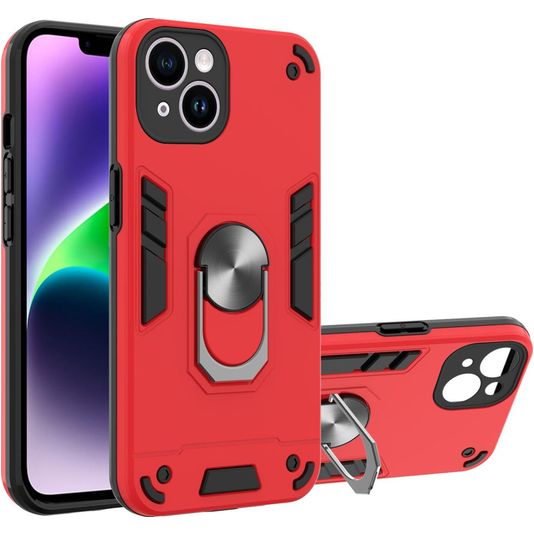 Mobigear Armor Ring Coque iPhone 14 Coque arrière Rigide Anti-Chocs avec Anneau-Support - Rouge