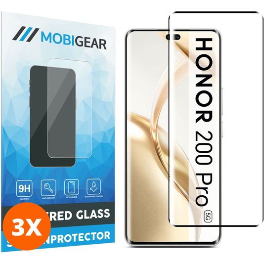 Mobigear Premium HONOR 200 Pro Verre trempé Protection d'écran - Compatible Coque - Noir (Lot de 3)