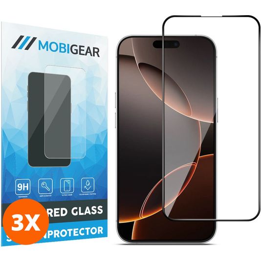 Mobigear Premium iPhone 16 Pro Max Verre trempé Protection d'écran - Compatible Coque - Noir (Lot de 3)