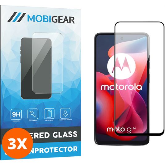 Mobigear Premium Motorola Moto G24 Verre trempé Protection d'écran - Compatible Coque - Noir (Lot de 3)