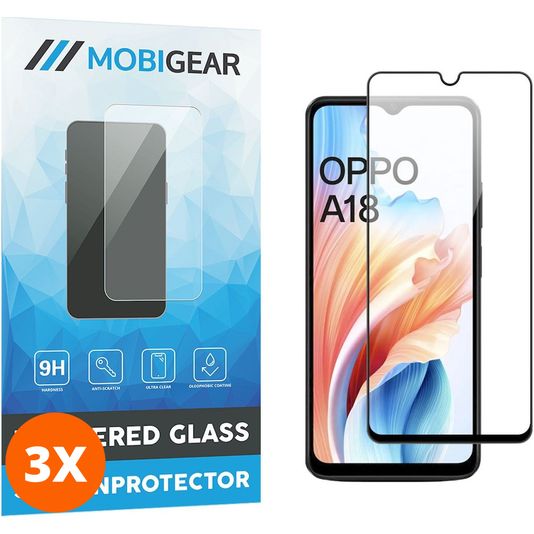 Mobigear Premium OPPO A18 Verre trempé Protection d'écran - Compatible Coque - Noir (Lot de 3)