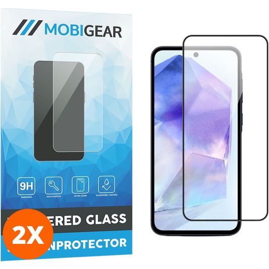 Mobigear Premium Samsung Galaxy A55 Verre trempé Protection d'écran - Compatible Coque - Noir (Lot de 2)