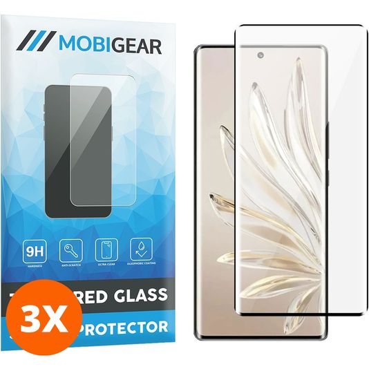 Mobigear Premium HONOR 70 Verre trempé Protection d'écran - Compatible Coque - Noir (Lot de 3)