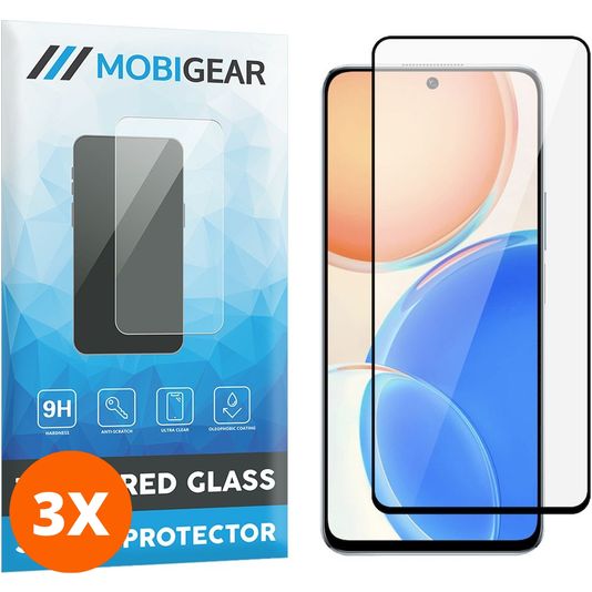 Mobigear Premium HONOR X8 Verre trempé Protection d'écran - Compatible Coque - Noir (Lot de 3)