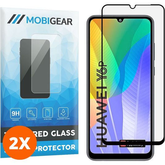 Mobigear Premium Huawei Y6p Verre trempé Protection d'écran - Compatible Coque - Noir (Lot de 2)
