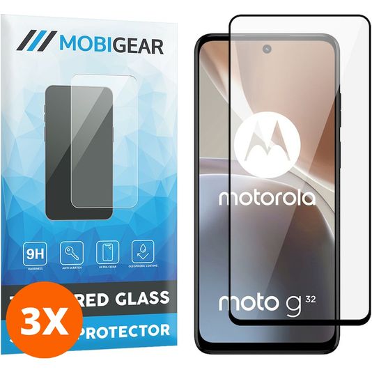 Mobigear Premium Motorola Moto G32 Verre trempé Protection d'écran - Compatible Coque - Noir (Lot de 3)
