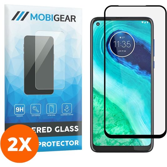 Mobigear Premium Motorola Moto G8 Verre trempé Protection d'écran - Compatible Coque - Noir (Lot de 2)