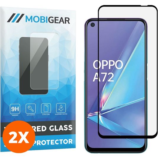 Mobigear Premium OPPO A72 Verre trempé Protection d'écran - Compatible Coque - Noir (Lot de 2)