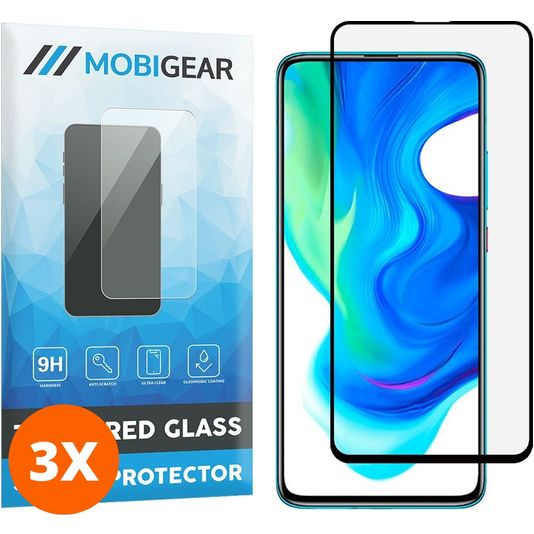 Mobigear Premium POCO F2 Pro Verre trempé Protection d'écran - Compatible Coque - Noir (Lot de 3)