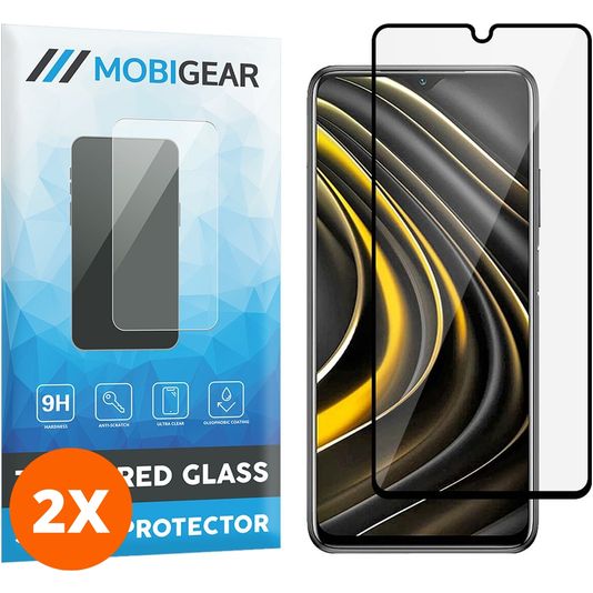 Mobigear Premium POCO M3 Verre trempé Protection d'écran - Compatible Coque - Noir (Lot de 2)