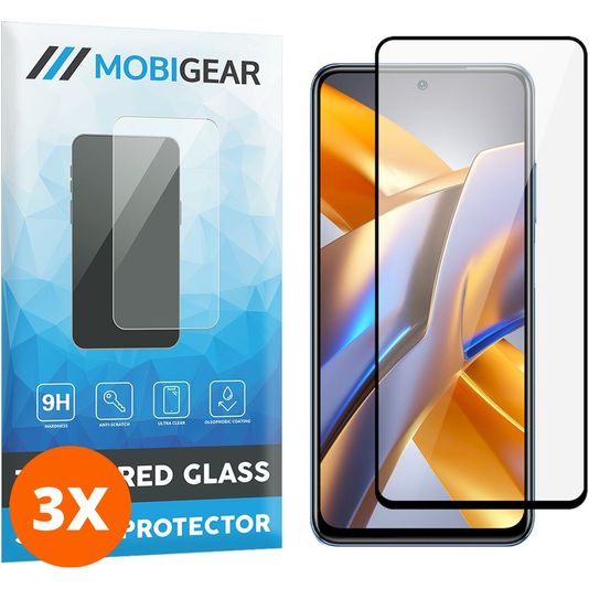 Mobigear Premium POCO M5s Verre trempé Protection d'écran - Compatible Coque - Noir (Lot de 3)