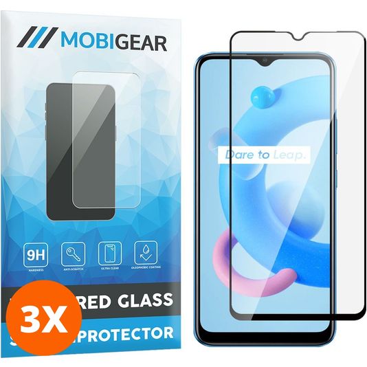 Mobigear Premium Realme C11 (2021) Verre trempé Protection d'écran - Compatible Coque - Noir (Lot de 3)