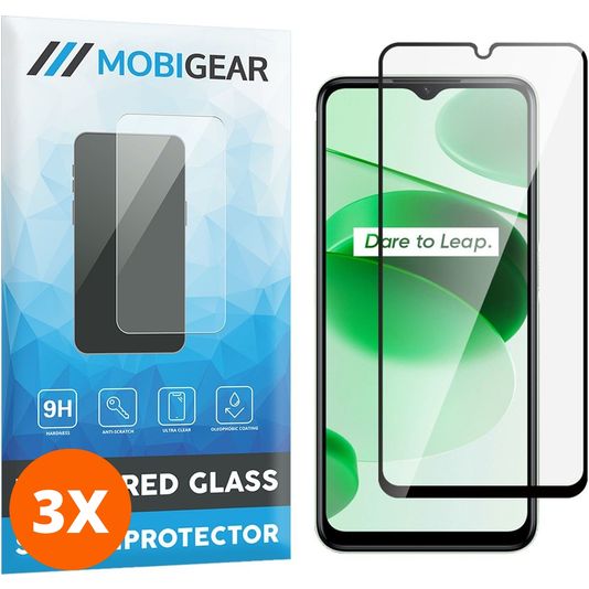 Mobigear Premium Realme C35 Verre trempé Protection d'écran - Compatible Coque - Noir (Lot de 3)