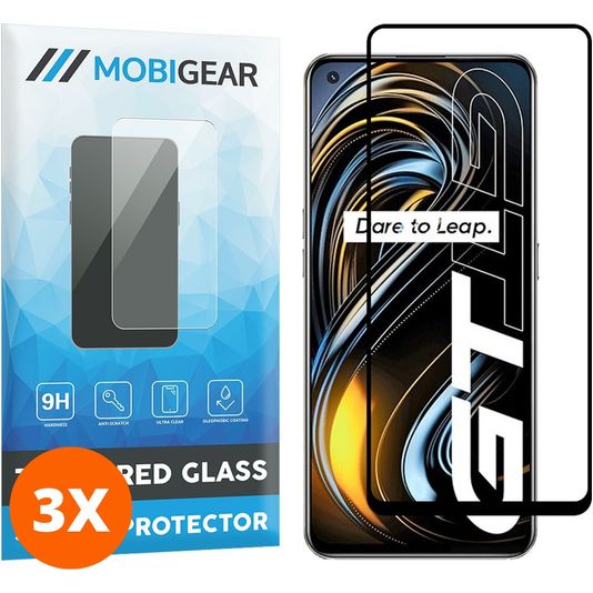 Mobigear Premium Realme GT Verre trempé Protection d'écran - Compatible Coque - Noir (Lot de 3)