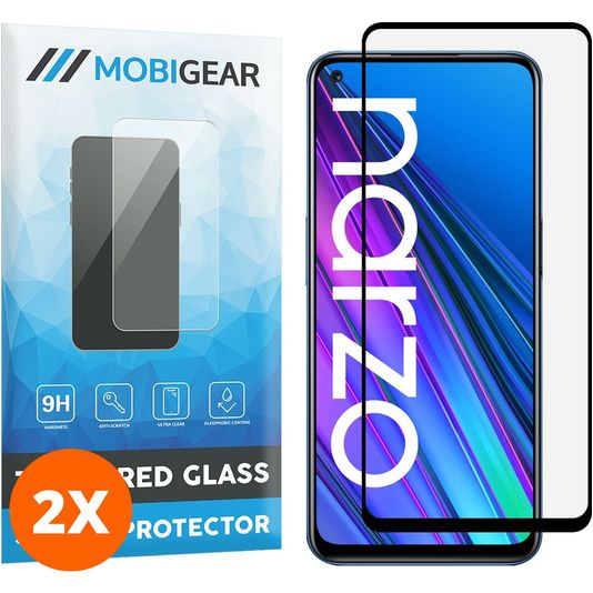 Mobigear Premium Realme Narzo 30 5G Verre trempé Protection d'écran - Compatible Coque - Noir (Lot de 2)