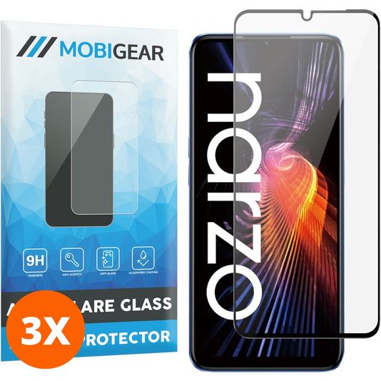 Mobigear Premium Realme Narzo 50 5G Verre trempé Protection d'écran - Compatible Coque - Noir (Lot de 3)