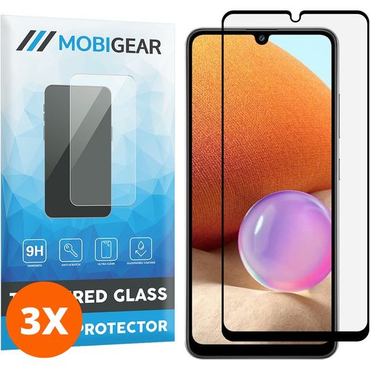 Mobigear Premium Samsung Galaxy A32 4G Verre trempé Protection d'écran - Compatible Coque - Noir (Lot de 3)