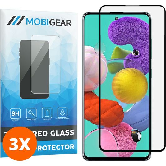 Mobigear Premium Samsung Galaxy A51 Verre trempé Protection d'écran - Compatible Coque - Noir (Lot de 3)