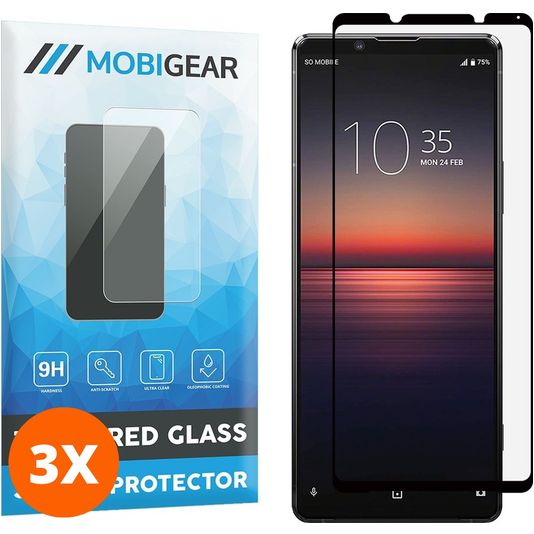 Mobigear Premium Sony Xperia 10 II Verre trempé Protection d'écran - Compatible Coque - Noir (Lot de 3)